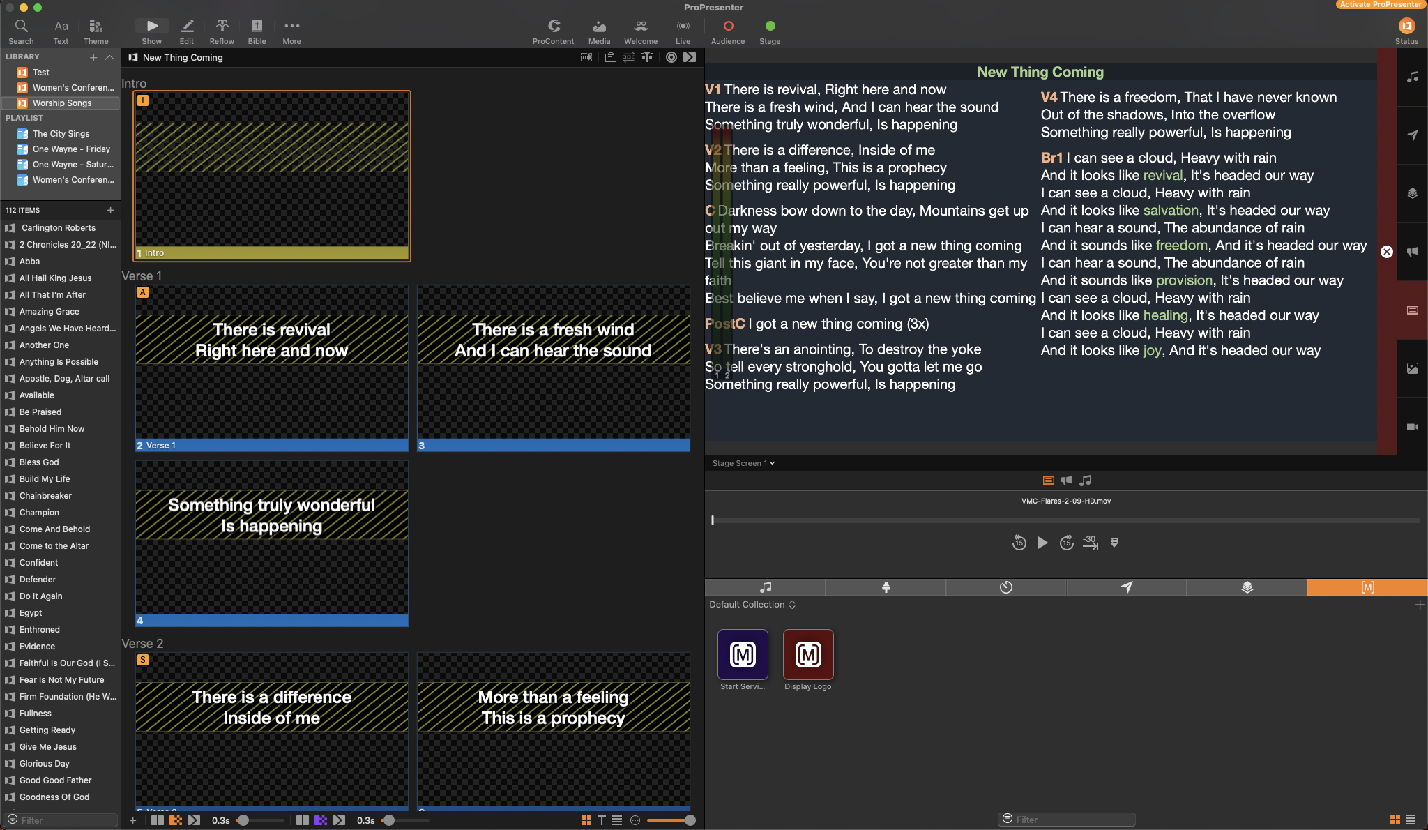 - Automatically generates full-page stage lyric displays using the ProPresenter API